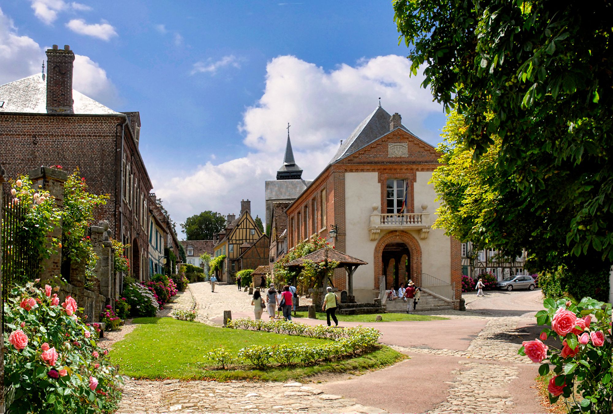 La rue du Logis du Roy, à gauche une maison datant de 1750. La ruelle Saint-Amant et ses noisetiers, la fameuse maison bleue qui date de 1690, La tour porte, ancienne porte du château, les remparts, les jardins en terrasse d'Henri Le Sidaner et même un petit vignoble sur les hauteurs de la ville lui donnent ce cachet bucolique si particulier. Surnommée "le village aux mille rosiers", c’est un véritable festival de couleurs rouge, blanche, saumon, jaune, rose, violette en pleine floraison !